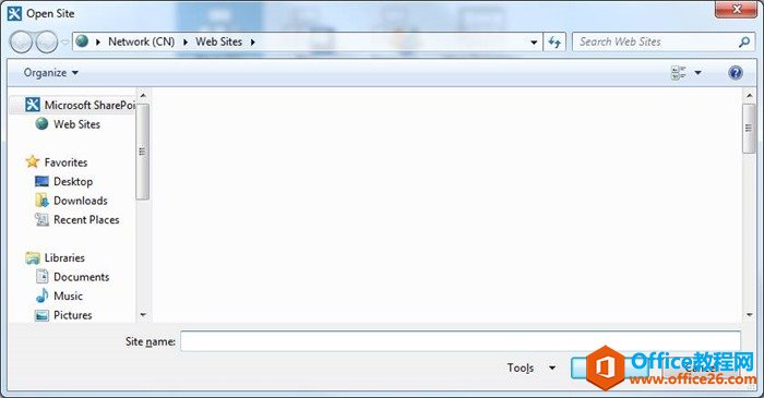 在Site name中填写我们的网站集地址,点击Open可以打开网站,可能会弹出登陆框需要登录,输入windows账号的用户名和密码(e.m:domain/linyu password);
