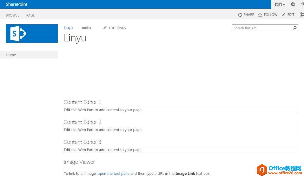 1、打开一个SharePoint页面,如下图: