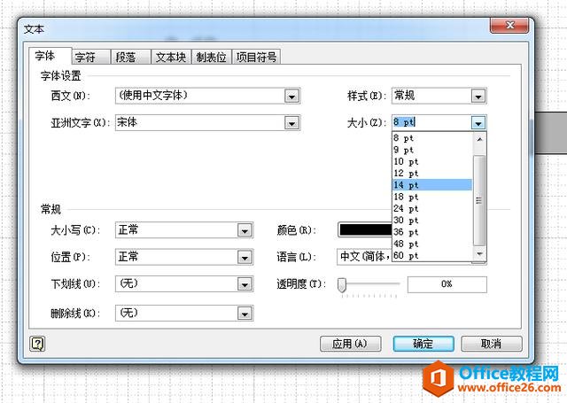 可以看到原来的字体大小是8pt,我们修改为14pt。
