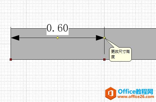鼠标移动到水平尺寸形状的右侧黄色菱形块上,鼠标变成十字形状,之后按住左键,向上拖动到合适的高度,放开左键。如下图。