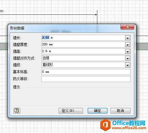 可以看到原始墙的长度是9.68m,墙厚200mm,墙高2.6m。如下图。
