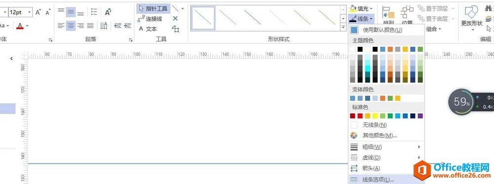 再画一个圆,(可以选择椭圆然后按住shift画正圆)按上述步骤在线条选项里面找到填充选项,去掉内部填充的蓝色。然后用普通线画一个”Y“,我们会发现VISIO提供了线条校准,会有一条虚线来帮助我们校准参考。