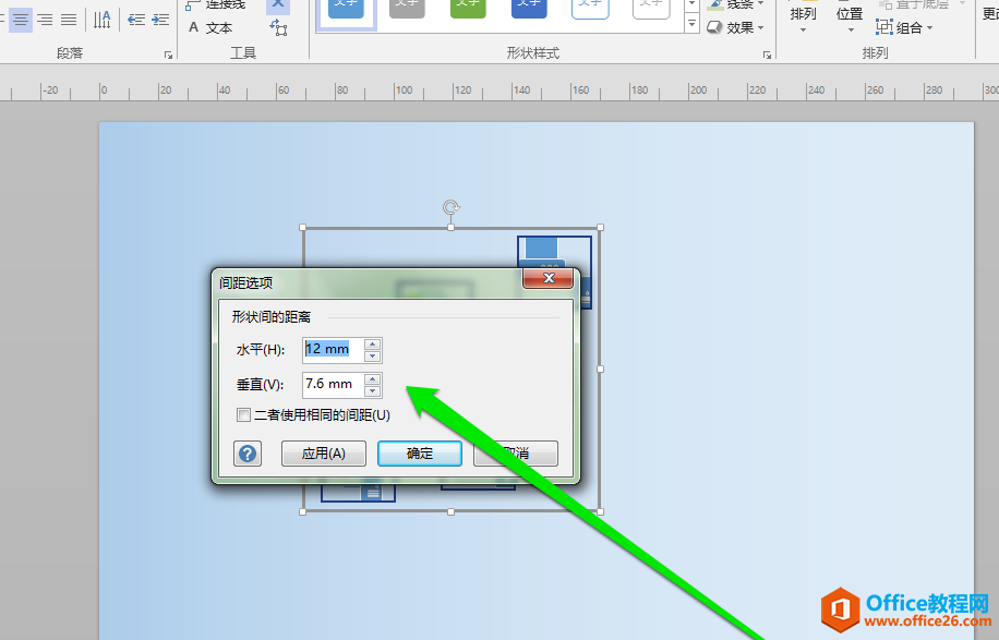 接下来我们在间距的设置页面,进行设置间距的数值以后,点击应用按钮。