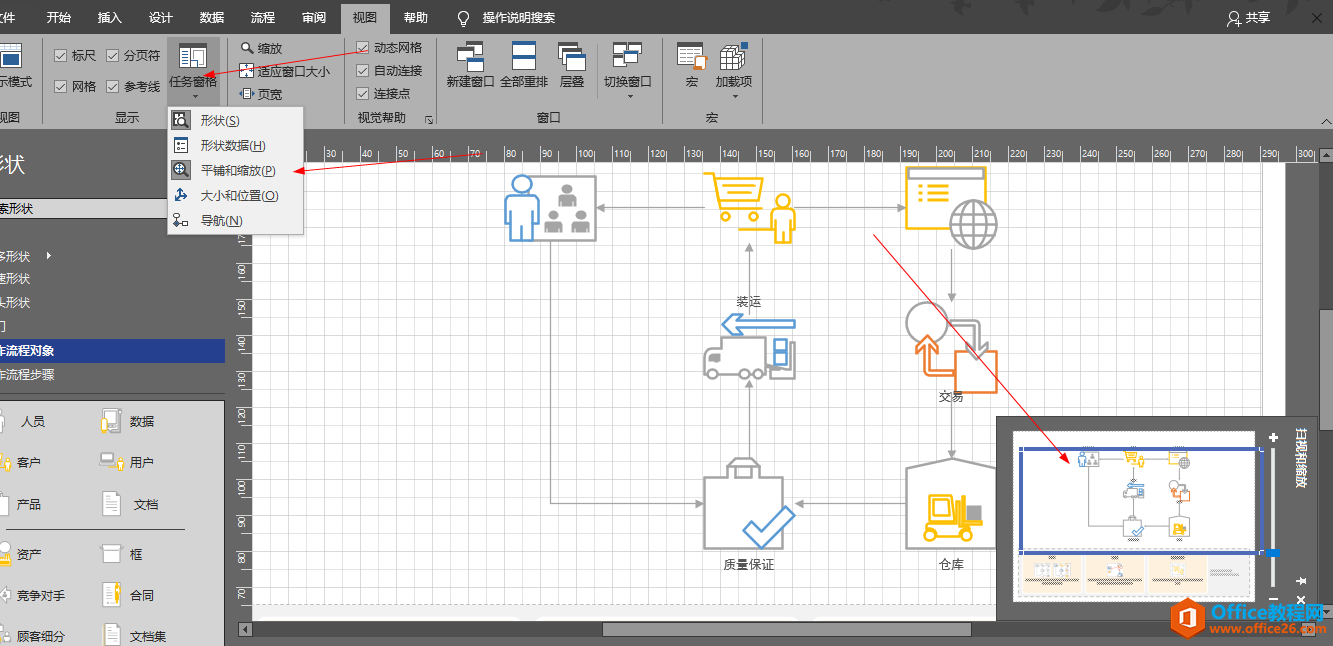 下面我建立一张工作流程图,visio工作界面如下图所示: