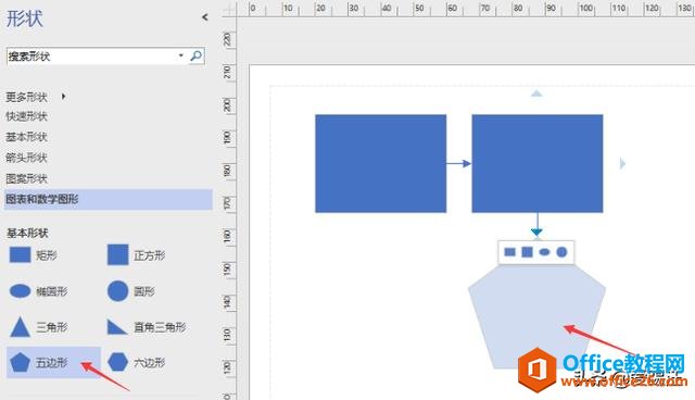 如果所需形状不在浮动工具栏上,可以将形状从【形状】窗格拖动到自动连接箭头。