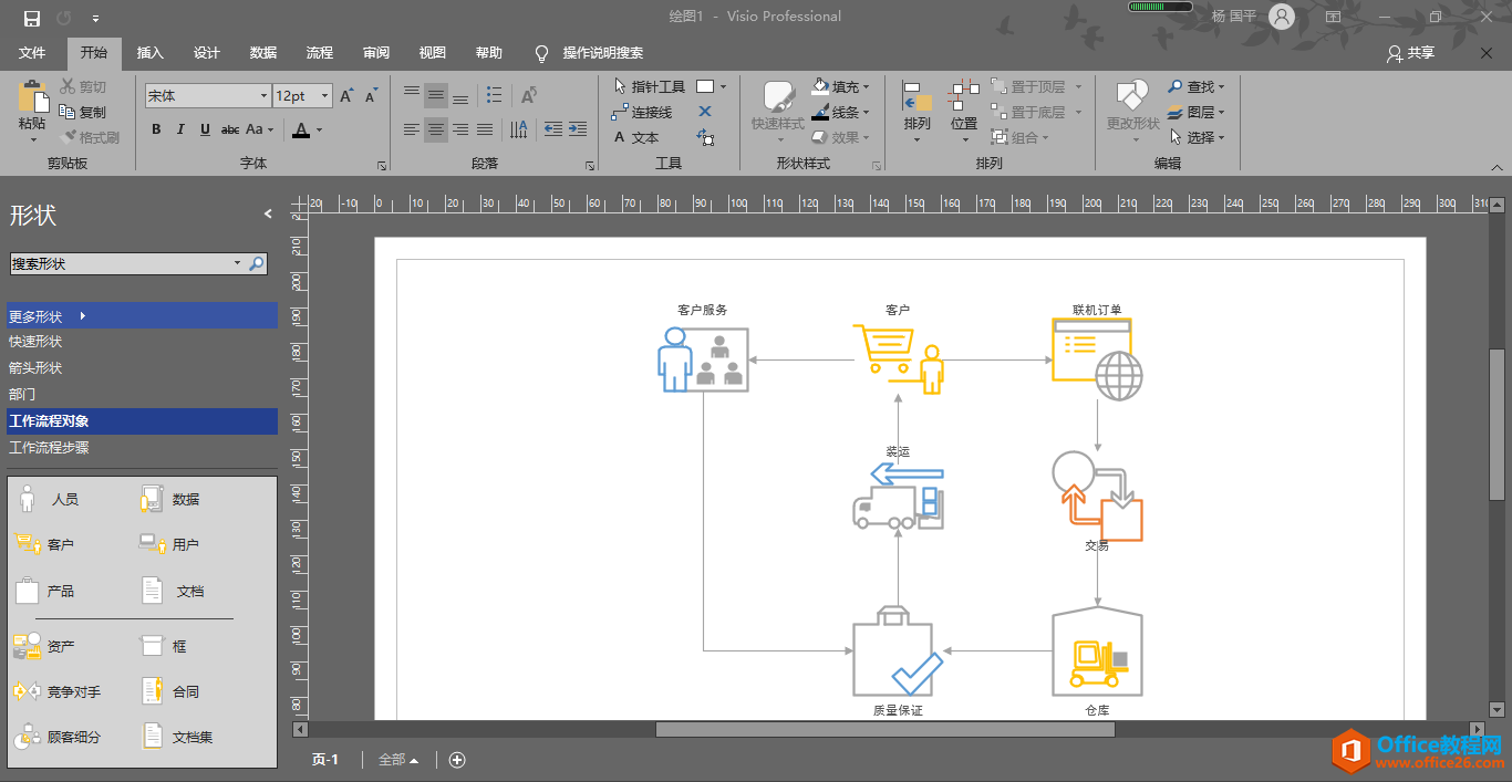下面我建立一张工作流程图,visio工作界面如下图所示: