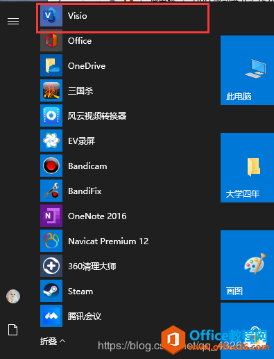 4.安装完成后,在Win键(开始)会显示Visio软件,就安装成功了。