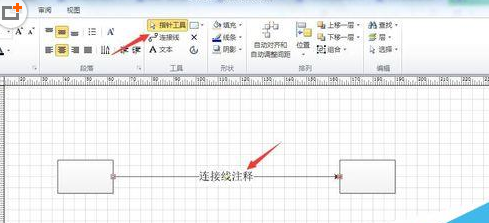 接着点击菜单栏上部的指针工具,然后选中连接线。