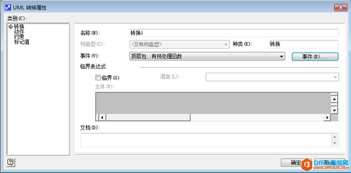 通过双击转换线,弹出"UML转换属性"对话框。如下图所示: