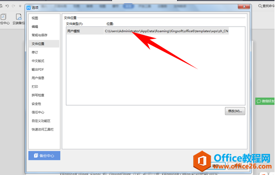 弹出选项的对话框,选择文件位置选项,我们看到显示出文件位置,单击右下角的修改。