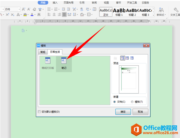当然,我们也可以选择日常生活下的笔记,如果想要每次打开都是这个界面,单击左下角设为默认模板即可。