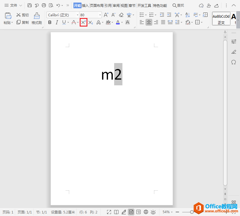 第三步:鼠标左键选中数字『2』后,点击页面中的『上标』功能(下图中红色方框标记处)即可;