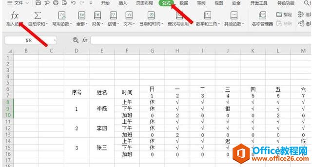 WPS excel如何用 COUNTIF 函数统计员工考勤状况
