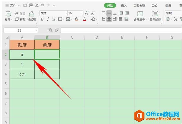 接下来看2π,我们在角度当中输入公式=DEGREES(2*PI()),单击回车即可。