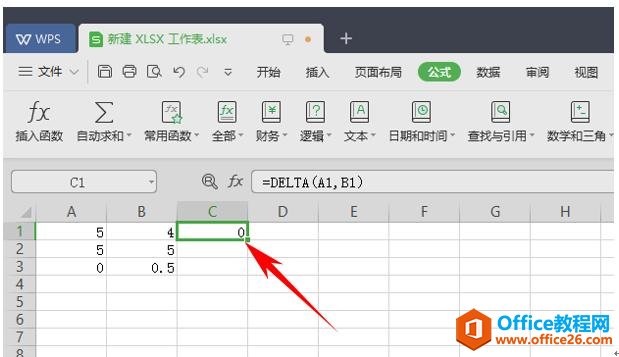 输入完成后,单击工具栏中公式-插入函数,弹出插入函数对话框,选择工程-DELTA 函数:
