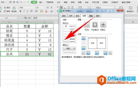 弹出单元格格式的对话框,选择边框,选择外边框与内部边框,然后单击样式,选择双横线,然后单击下边框,如下图所示,单击确定。