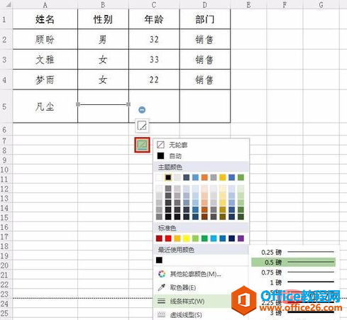 第七步:在“线条样式”中可以选择所需的线条粗细。