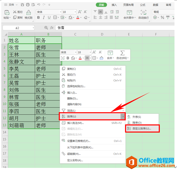 首先,我们看到下表,分为好几个职位,有老师、医生和护士,我们想要将按照这三个职位分别排序,应该怎么做呢。