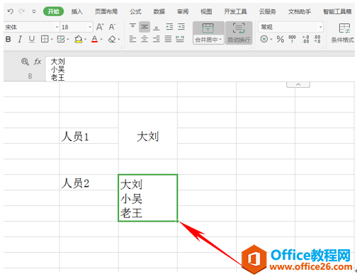 单击后我们就看到了所有的人名数据就已经显示在同一个单元格当中了。