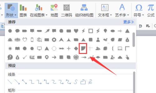 4、点击形状选项,在其子级菜单那里找到推荐选项,如图所示: