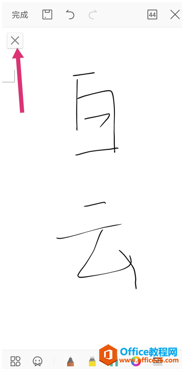 然后,就可以用手指在屏幕上写字了。写好之后,点击左上角的交叉可以退出墨迹功能:
