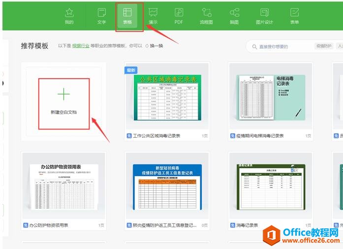 首先,我们打开【表格】,选择【新建空白文档】,新建一个空白的表格文档;