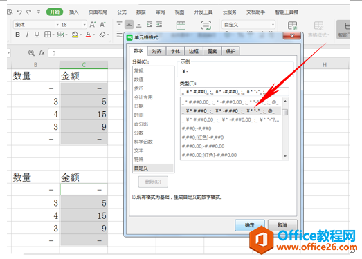 然后数量就变为了一个横杠,在这里我们也可以利用格式刷来将其他的0都变成横杠。