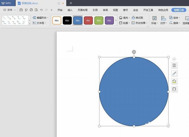 1、新建WPS文档,点击【插入】【形状】【圆形】。