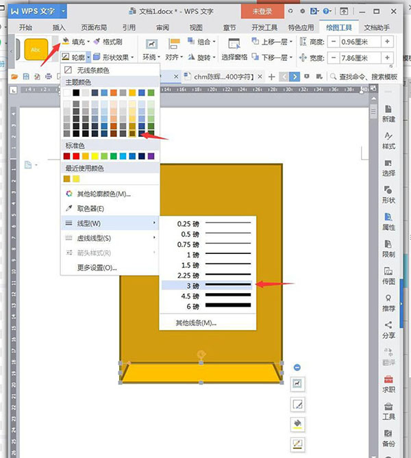 2、绘制文件袋的矩形形状,将【填充】设置成棕黄色,【轮廓】设置成棕褐色3磅。